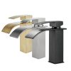 Modern Brushed Nickel Waterfall Spout Bathroom Faucet,lead-free SUS 304 Stainless steel material, Sturdy and Durable.