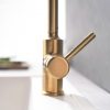 Pull-down kitchen sink faucet with unique swivel pull-out spout. It is distinguished by its vintage style with an engraved golden handle.